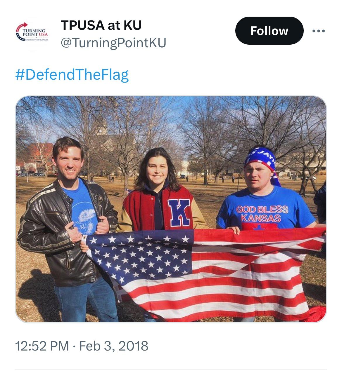 Between 2018-2022, Ian Ballinger was a student at the University of Kansas involved in both TPUSA and Young Americans for Liberty. And, according to his old LinkedIn profile, he was the outreach director and social media manager for KU’s TPUSA chapter.