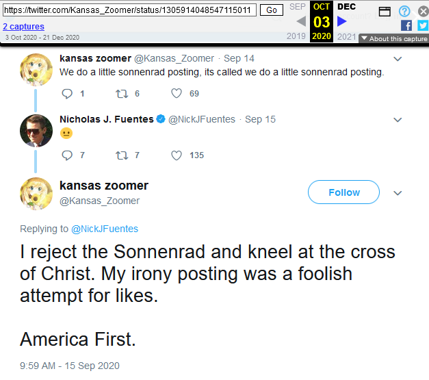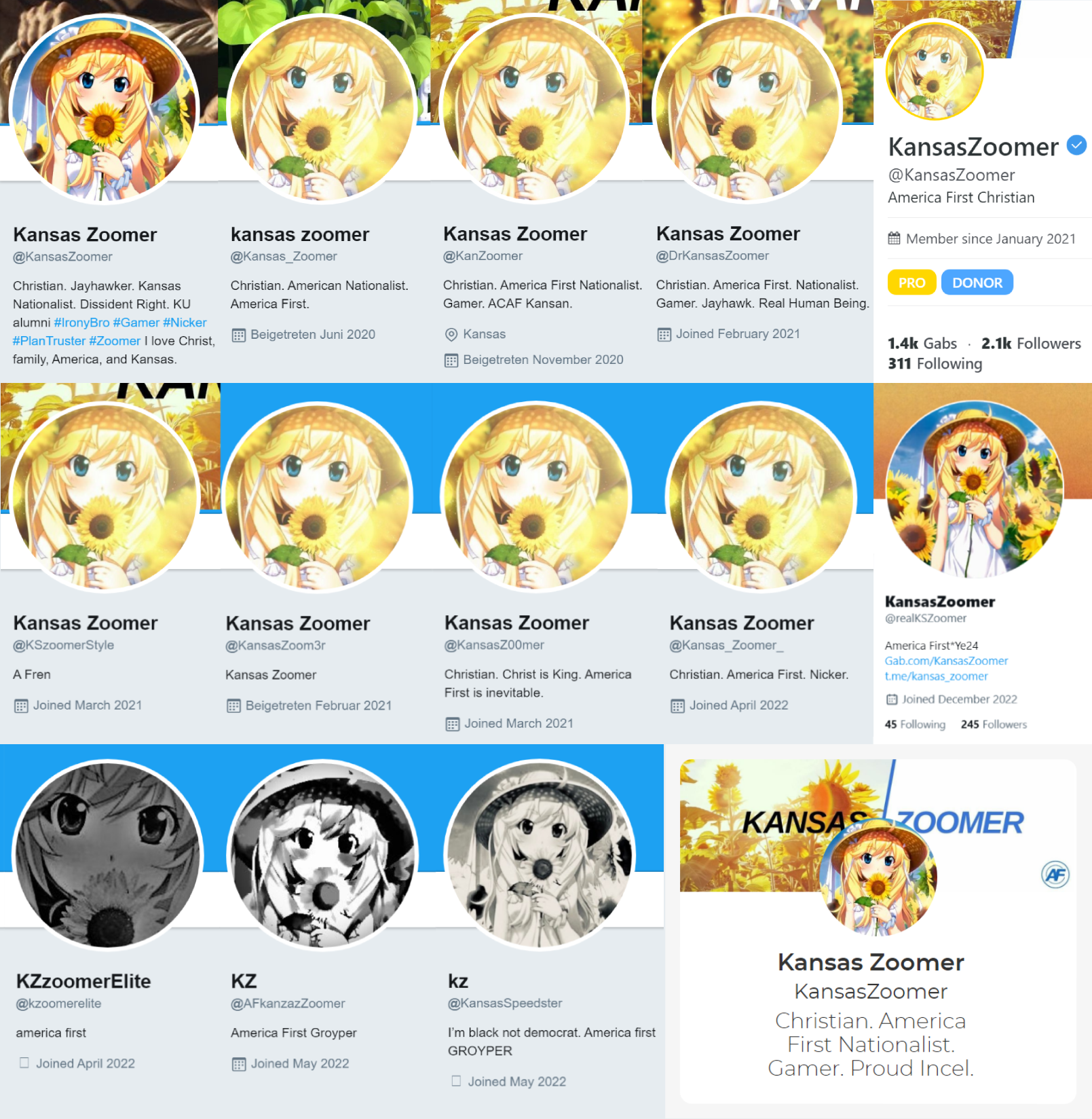 Kansas Zoomer was an extremely dedicated personality in the Nick Fuentes groyper space between 2020-2022 with at least a dozen accounts.