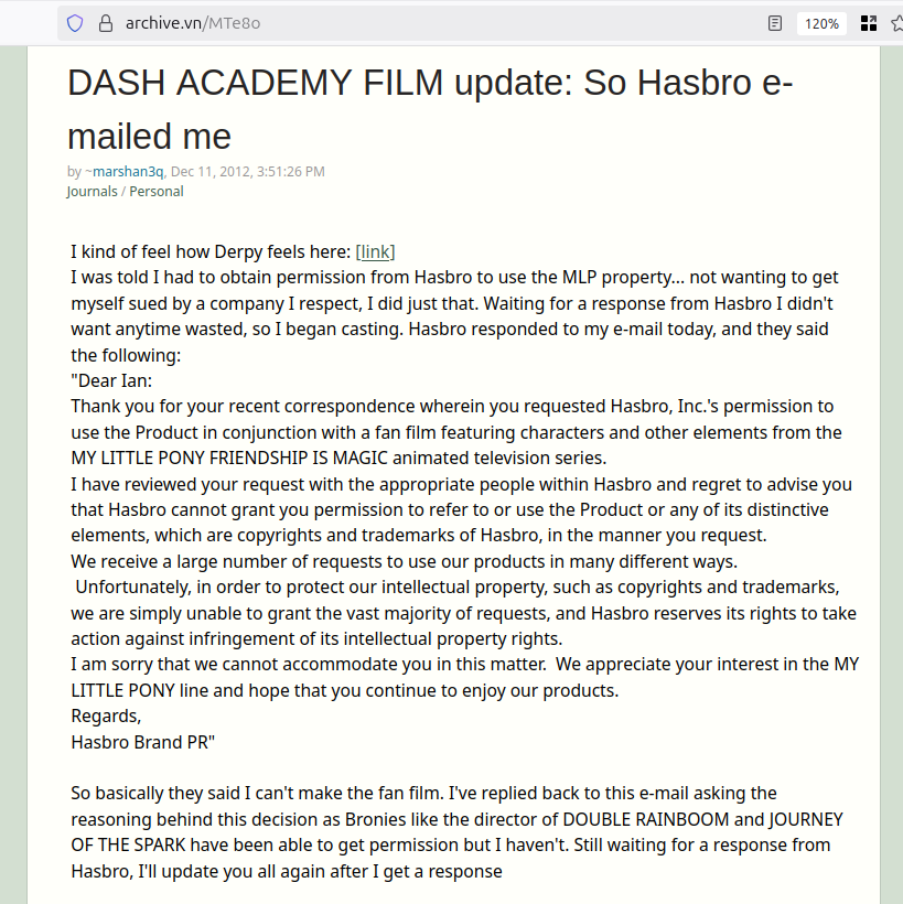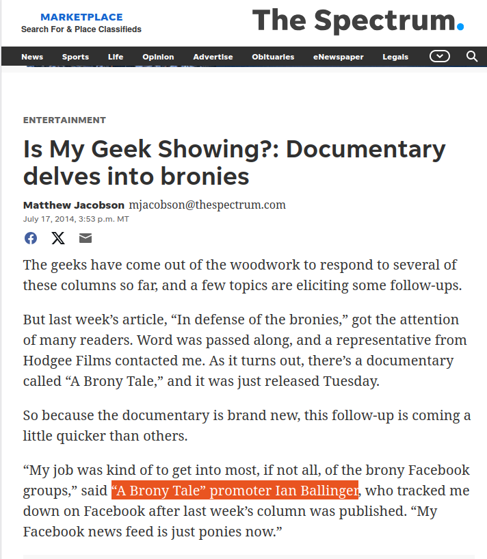 About a decade earlier, Ian was steeped in the My Little Pony fandom as a ‘brony’, with his eyes set on making fan films in the community. However, Hasbro denied permission to use their intellectual property.