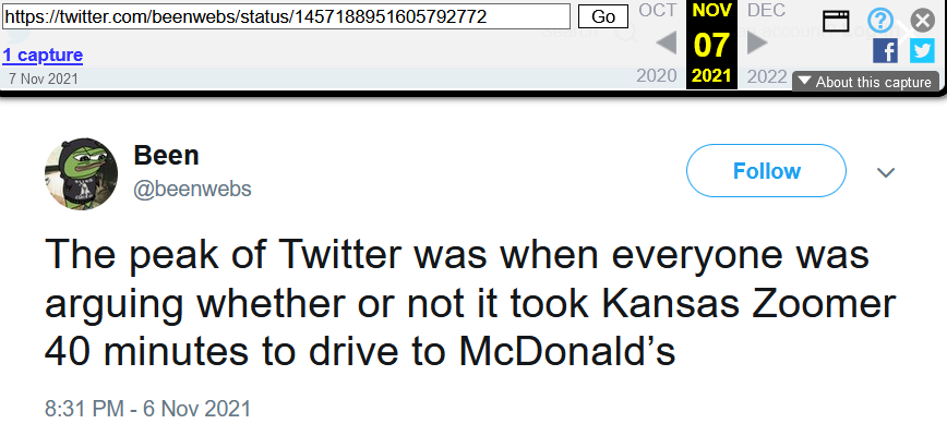 He specified the distance it took to drive to McDonalds, and we confirmed it…