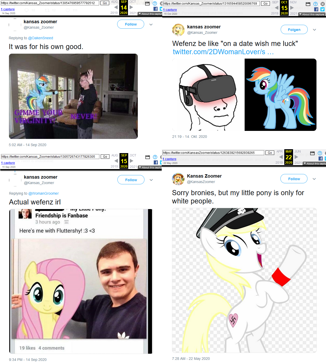 Continuing on a current theme of white supremacists connected to TPUSA, one identification we didn’t have time to get around to last year was groyper / nazi / brony Kansas Zoomer, identified as Ian Ballinger of Kansas.