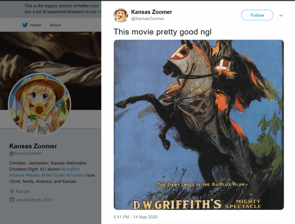 Kansas Zoomer was an extremely dedicated personality in the Nick Fuentes groyper space between 2020-2022 with at least a dozen accounts.